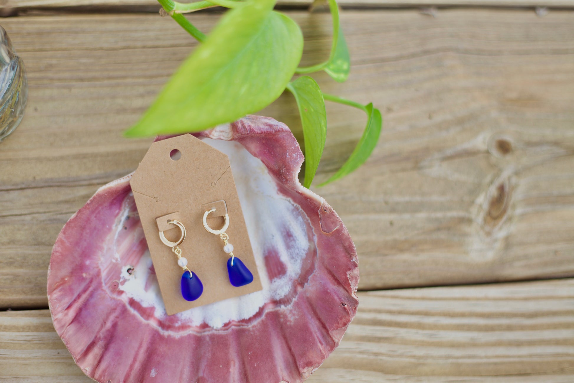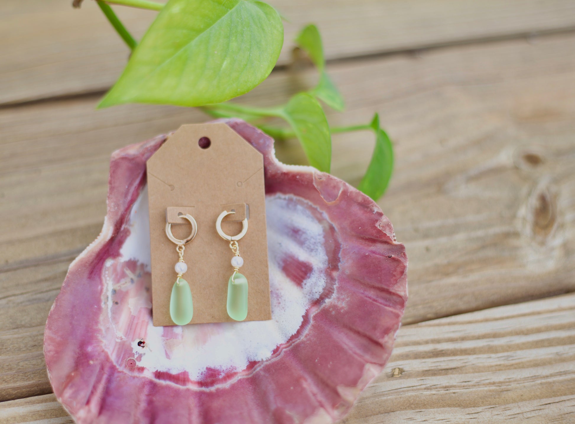 Material: tumbled seaglass, pearl, gold filled earring cuff